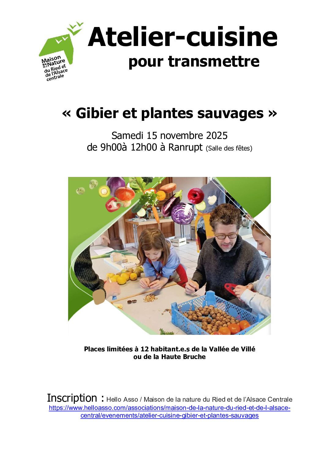 La Maison de la Nature du Ried et de l’Alsace Centrale organise des ateliers de cuisine. Le prochain atelier «...